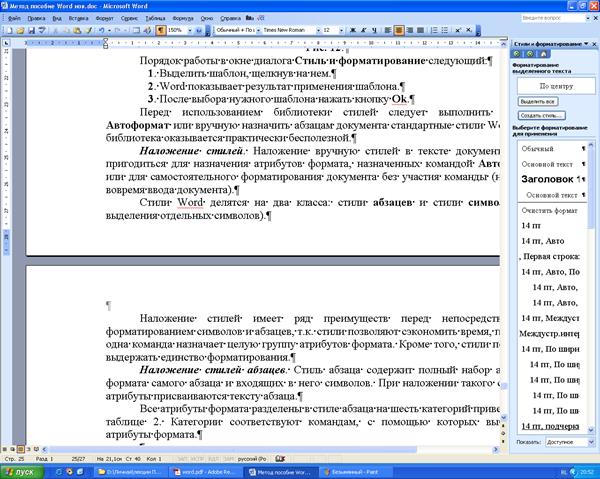 После того как автоматическое форматирование документа завершено, можно быстро изменить его внешний облик с помощью библиотеки стилей. Библиотека стилей вызывается командой Формат / Стиль и форматирование изображенной на рисунке 12.