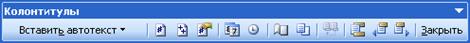 - открывает панель Колонтитулы, содержащую инструменты для работы с колонтитулами;