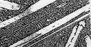 На рис.3.7 показана структура эвтектического белого чугуна. Он содержит 100% ледебурита и представляет собой смесь перлита и цементита. Перлит в ледебурите темный, цементит – светлый.