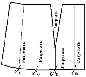 5) Линию от вершины вытачки до линии низа необходимо разрезать, а вытачку закрыть.