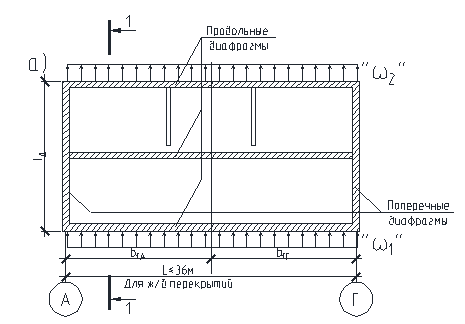 Для упрощения расчётов по нагрузкам в курсовой работе принимается расчётная схема перекрытий как однопролётных шарнирно опёртых балок, устойчивость несущей системы обеспечивается вертикальными и горизонтальными диафрагмами.