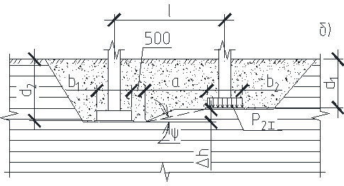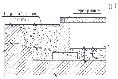 б) Для случая перепада глубины заложения рядом расположенных фундаментов.