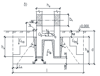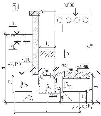 Рис. 5.4 Определение глубины заложения из условий опирания ж/б колонн
