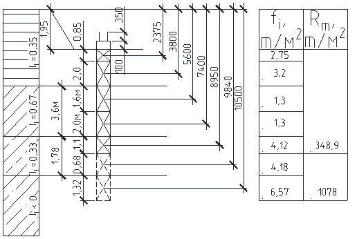 - Глубина заложения ростверка принимается из примера 5 с увеличением на глубину заведения свай в тело ростверка