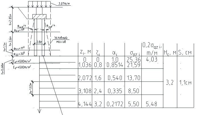 3. Нагрузка в уровне подошвы условного массива