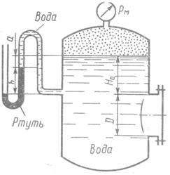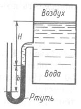 , если уровень ртути в открытой трубке манометра расположен ниже уровня жидкости в резервуаре на величину