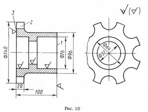 6. По эскизу детали (рис.10) разработайте эскизы элементов литейной формы, модельных плит, стержневого ящика и собранной литейной формы (в разрезе). Опишите последовательность изготовления формы одним из методов машинной формовки. Материал детали - чугун СЧ20.