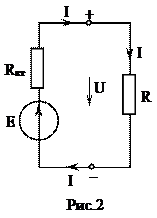 На рисунке 2 показана простейшая замкнутая цепь, состоящая из реального источника э.д.с. Е, имеющего внутреннее сопротивление Rвт и нагрузочного резистора с сопротивлением R (сопротивление соединительных проводов включено в сопротивление R резистора).