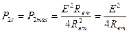 Мощность, развиваемая источником энергии в согласованном режиме с учетом (65):