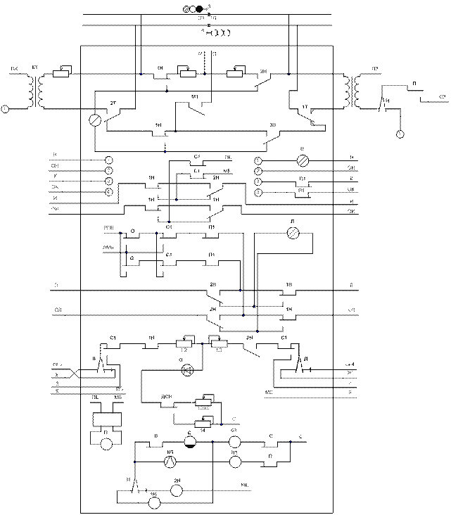 Нажатие данных кнопок приводит к включению соответствующих реле: ЧОВ и ЧПВ. Контактами реле ЧОВ к цепи Н-ОН подключается реле НВСН, а контактами реле ЧПВ – батарея. После срабатывания реле НВСН замыкаются цепи питания реле НВКП, НПКП, НВ и начинается цикл смены направления. С выключением реле ЧПВ (за счет разряда конденсатора) срабатывает реле ЧСН и цикл смены направления заканчивается.