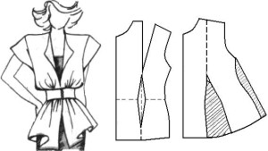 Перемещая вытачки, можно изменить форму и силуэт изделия. Так, при переводе плечевой вытачки на линию талии или бедер получаем выкройку изделия расклешенного силуэта (рис.9).