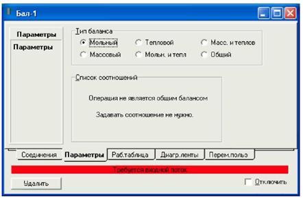 3. Перейдите на закладку Параметрыи с помощью селективных кнопок задайте Тип баланса– Мольный(Рис.1.50).
