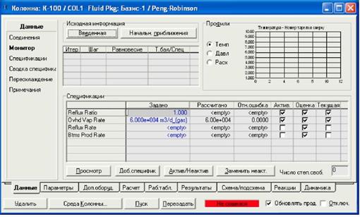 В данном случае в качестве спецификаций предлагается Расхода параи Флегмовое число.