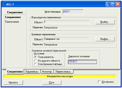 3. В групповой рамке Целевая переменнаянажмите кнопку Выбори укажите, что целевой переменной является температурапотока Товарный газ. В нашем случае необходимо поддерживать определенное значение температуры точки росы товарного газа.