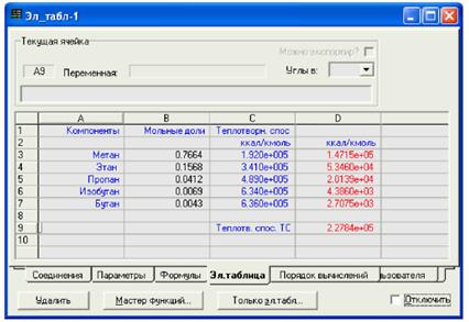 Теперь Вы можете открыть окно Электронной таблицыи убедиться, что значение теплотворной способности Товарного газаизменилось (Рис.1.76).