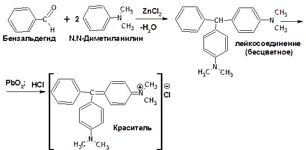 1. Малахитовый зеленый получают по реакции Фриделя-Крафтса: