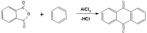 В результате реакции получают антрахинон, который легко восстанавливается до антрацена. Например, боргидридом натрия: