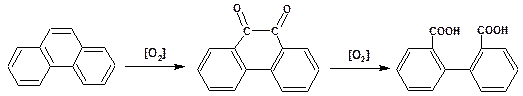 Под действием окислителей фенантрен легко окисляется в фенантренхинон, который далее окисляется до 2,2`-бифеновой кислоты: