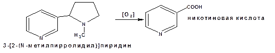 Никотиновую кислоту получают окисляя алкалоиды никотин или анабазин: