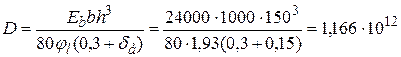 Жесткость D определим по формуле (3.8,а), принимая ширину сечения b = 1 м = 1000 мм