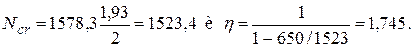Поскольку Nl/N = 0,93 > 0,9, согласно п. 3.3 проверим прочность панели на действие только постоянных и длительных нагрузок, т.е. при N = 650 кН. В этом случае jl = 2, и тогда