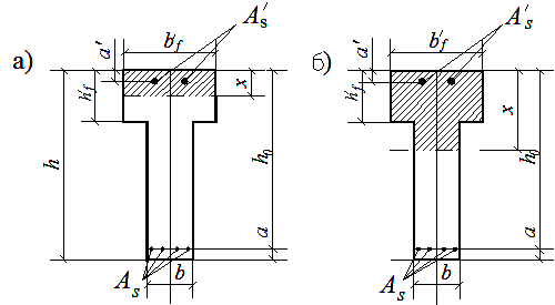 3.23. Расчет сечений, имеющих полку в сжатой зоне (тавровых, двутавровых и т.п.), производят в зависимости от положения границы сжатой зоны: