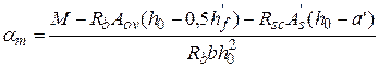 б) если граница сжатой зоны проходит в ребре, т.е. условие (3.32) не соблюдается, площадь сечения растянутой арматуры определяют по формуле