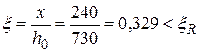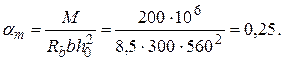 Пример 2. Дано: сечение размером b = 300 мм, h = 600 мм; а= =40 мм; изгибающий момент с учетом кратковременных нагрузок М = =200 кН.м; бетон класса В15 (Rb = 8,5 МПа); арматура класса А300 (Rs = 270 МПа).