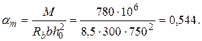 Р а с ч е т. h0 = h – a = 800 – 50 =750 мм. Требуемую площадь продольной арматуры определяем согласно п. 3.21. По формуле (3.22) находим значение aт: