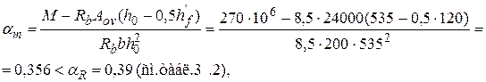 Р а с ч е т. h0= 600 – 65 = 535 мм. Расчет производим согласно п. 3.25 в предположении, что сжатая арматура по расчету не требуется.
