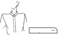 От точки Апо линии середины откладывают 3-4 см — ширину воротника и ставят точку В: