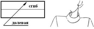 Выкройка воротника-хомутика имеет тоже прямоугольную форму, но высота его вдвое превышает высоту стойки. Выкройку воротника такого типа обычно строят при несколько расширенной горловине. Выкраивают его под углом 45° к нитям основы и двойной ширины, т. е. верхний и нижний воротник кроят из одного цельного куска ткани, располагая линию отлета в сгибе материала.