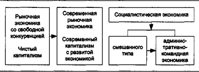 Рыночная экономика со свободной конкуренцией (чистый капитализм). Хотя эта система сложилась в XVIII в. и прекратила свое-существование в конце XIX — в первых десятилетиях'XX в. (в разных странах по-разному), однако очень многие ее элементы вошли в современную рыночную систему.