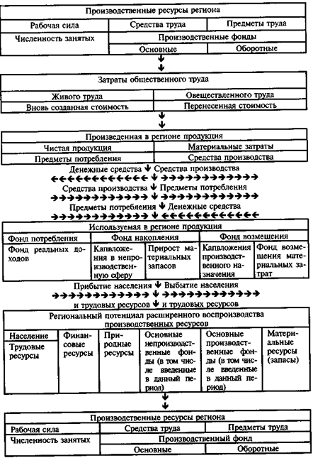 Последний этап движения производственных ресурсов завершается созданием и поддержанием на необходимом уровне потенциала их расширенного воспроизводства в регионе. Здесь речь