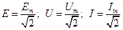 Действующие значения синусоидальных ЭДС, напряжений и токов могут быть определены на основании максимальных значений с помощью следующих выражений: