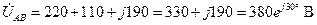 2. Определяем комплексные линейные напряжения источника на основании второго закона Кирхгофа, учитывая (3.6)-(3.8):
