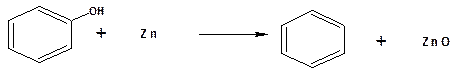 К числу реакций, протекающих с разрывом связи С-О, относится восстановление фенола цинковой пылью при перегонке. В ходе реакции гидроксильная группа замещается водородом: