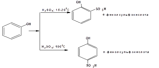 Различие условий указывает, что орто-фенолсульфокислота явяляется продуктом кинетически контролируемым, а образование пара-фенолсульфокислоты контролируется термодинамически.