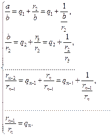 алгоритм Евклида для определения их наибольшего общего делителя, получаем конечную систему равенств.