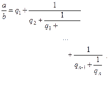 Разложение в конечную цепную дробь.