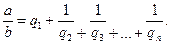 Такое выражение называется правильной конечной цепной дробью или правильной непрерывной дробью. При этом предполагается, что