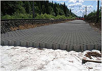 · значительное увеличение несущей способности верхнего слоя земляного основания (в 2 и более раз) и эффективное снижение постоянных деформаций в полотне;