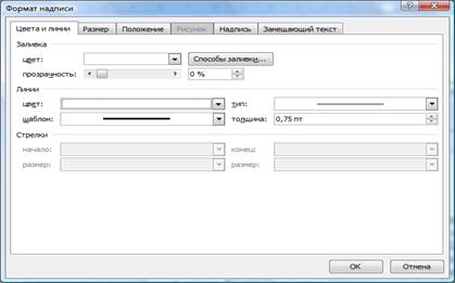 – в окне Формат надписи на вкладке Цвет и линии в области Линии в поле Цвет установить белый цвет и щелкнуть по кнопке ОК;