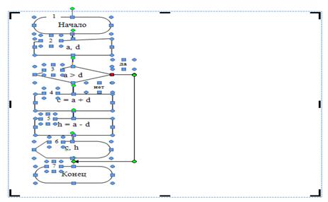 – выделить все элементы схемы алгоритма (удерживая нажатой клавишу Shift) и выполнить команду Группировать. В этом случае схема алгоритма будет восприниматься как один рисунок.