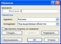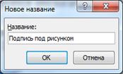 Для создания подписей к рисункам можно использовать кнопку Вставить названиегруппыНазваниявкладки Ссылки.При нажатии этой кнопки вводится название рисунка или создаётся новое название.