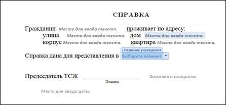 2. На месте точек требуется вставить элемент Текст, а на месте символов, выделенных цветом (знаками < >), – элемент Форматированный текст или Текущая дата.