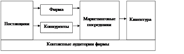 Основная цель любой фирмы― получение прибылей. Основная задача системы управления маркетингом― обеспечить производство товаров, привлекательных с точки зрения целевых рынков. Однако успех руководства маркетингом зависит и от деятельности остальных подразделений фирмы, и от действий ее посредников, конкурентов и различных контактных аудиторий. Силы, действующие в рамках микросреды фирмы, представлены на рис. 22.