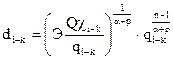 | К и р | − коэффициент и показатель степени в формуле, определяющий уклон i (потери напора на единицу длины трубопровода) линии диаметром di. |