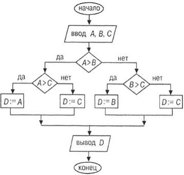 | поиска наибольшего значения из трех заданных чисел | ||