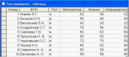 | каждая запись в таблице содержит однородные по типу данные | ||